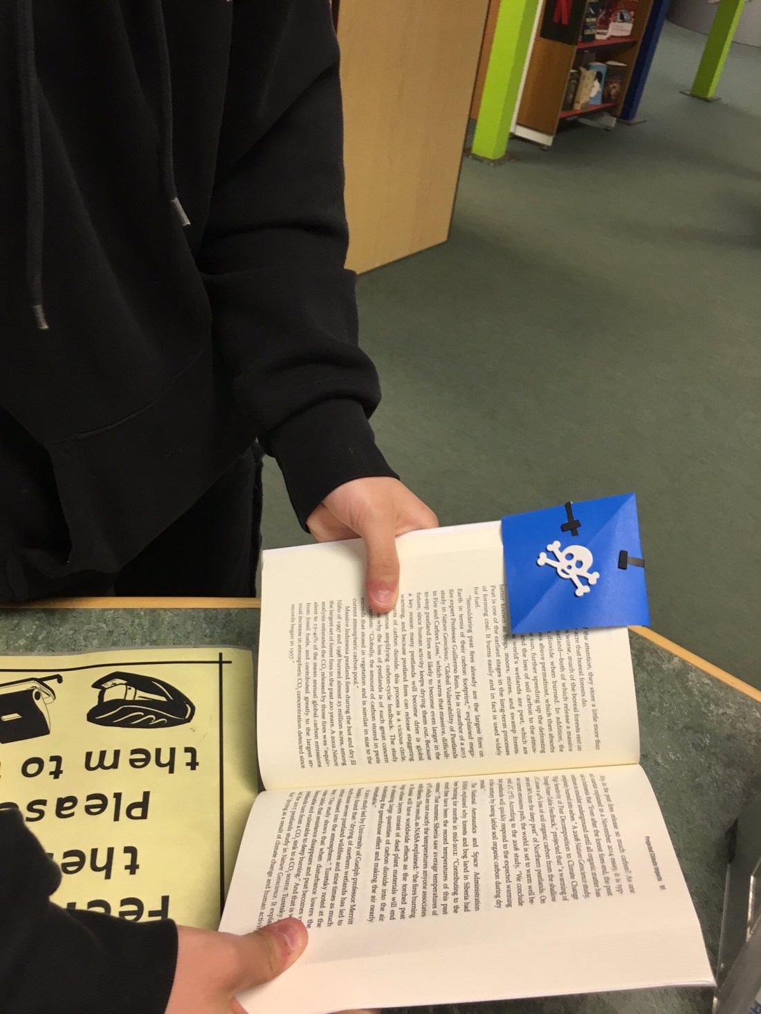 This year, we ran a staff shelfie competition to demonstrate to the students that staff read and own books. We also had an origami station, making and decorating one-minute-bookmarks. Once the student had a bookmark, they were nudged to borrow a book so that they could use it.