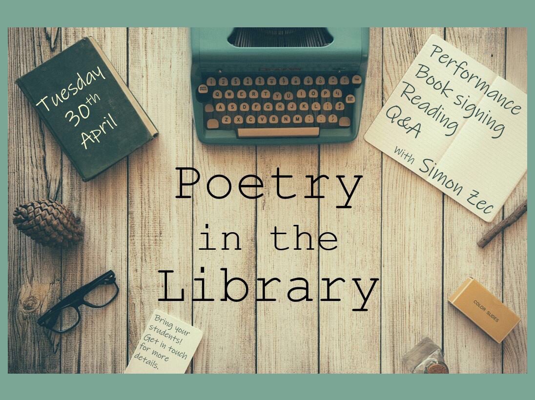 The climax of the whole poetry celebration was an event called “Poetry in the Library.” We sent bespoke invitation postcards to teaching staff and senior management to encourage them to visit. Simon Zec, a local poet, was with us all day. He performed poems, took questions about writing and his process and judged the 70 competition entries! He also wrote a poem dedicated to Brinsbury. It was brilliant to watch students’ body language transform from “do we have to be here?” to “actually, this guy is talking sense.” It was literally possible to track the engagement shift in each session from leaning away / to leaning in \ . Magic.