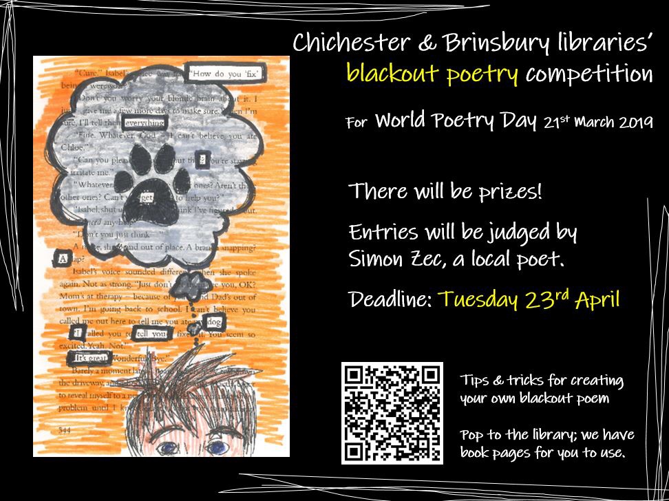 In addition , we ran a Blackout Poetry competition inspired by Matt, a Year 6 teacher on Twitter (@5GsPlz). More on how to write Blackout Poetry here. I warn you: it’s addictive. We worked hard with the GCSE English teachers to engage the resit students – in the end, they had multiple trips to the library during their lesson time. We also had entries from many other students, staff and visitors to the campus!