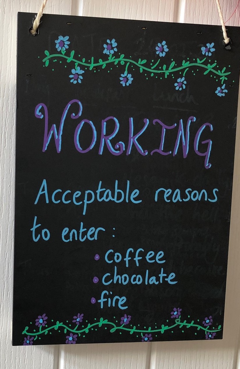 Space and time alone: I know that the places I used to work in weren’t solitary but they weren’t full of my people. People who talk at you, ask you questions all day, interrupt you and so on… For a while, I commandeered the lounge: my wife and man-child were forbidden from entering unless I initiated contact. Or there was a fire. Or chocolate. Also, it meant I could avoid the general chaos of the house (mess, washing, dishes) which I thought was also a benefit of escaping to study in other places. It was all calm and quiet but it still didn’t improve my productivity.
